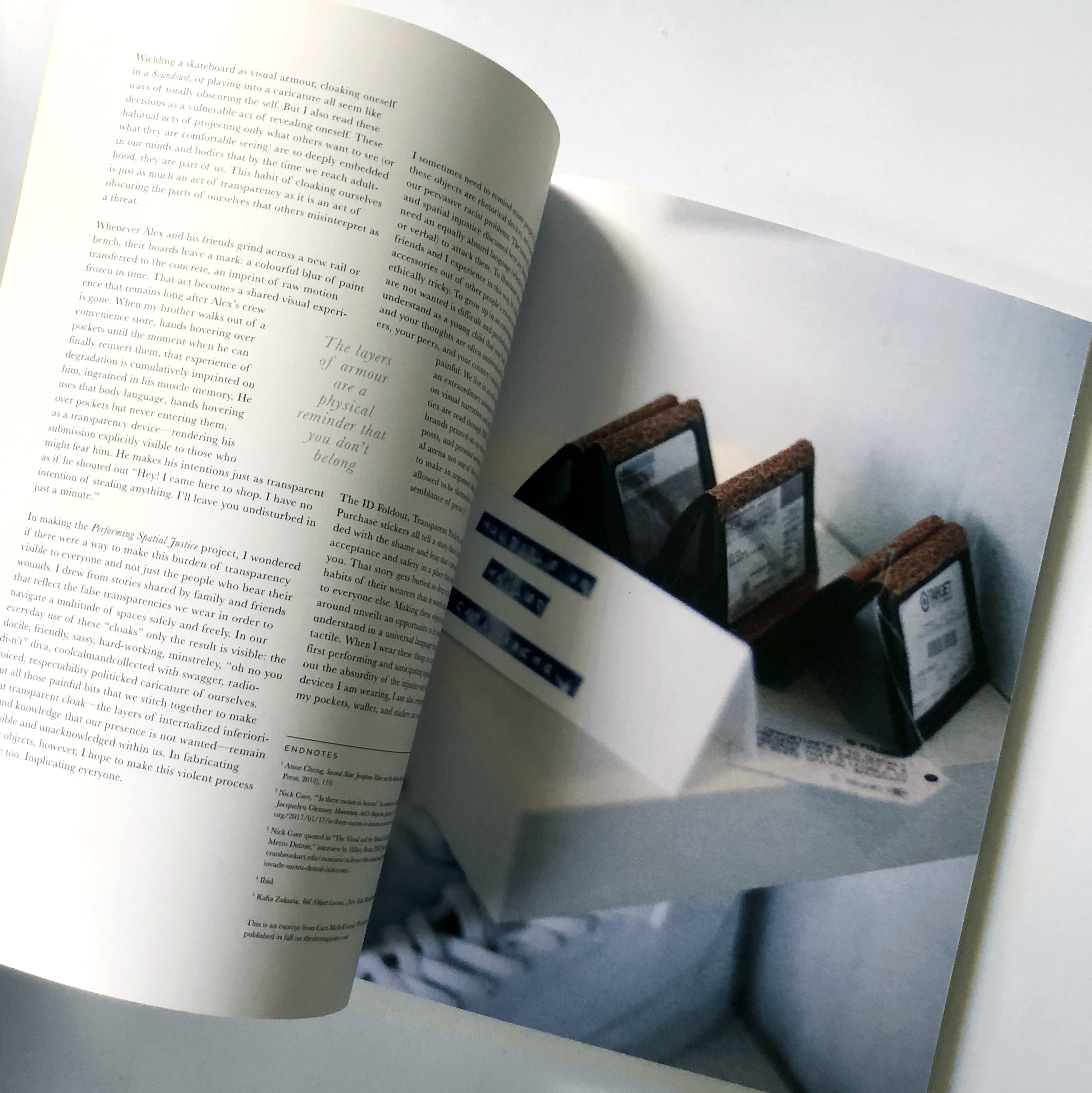 - ID Foldout from “Performing Spatial Justice” and the “Black Body Survival Store,” Boston, 2016-17. Photo by Nathan Tyrell.