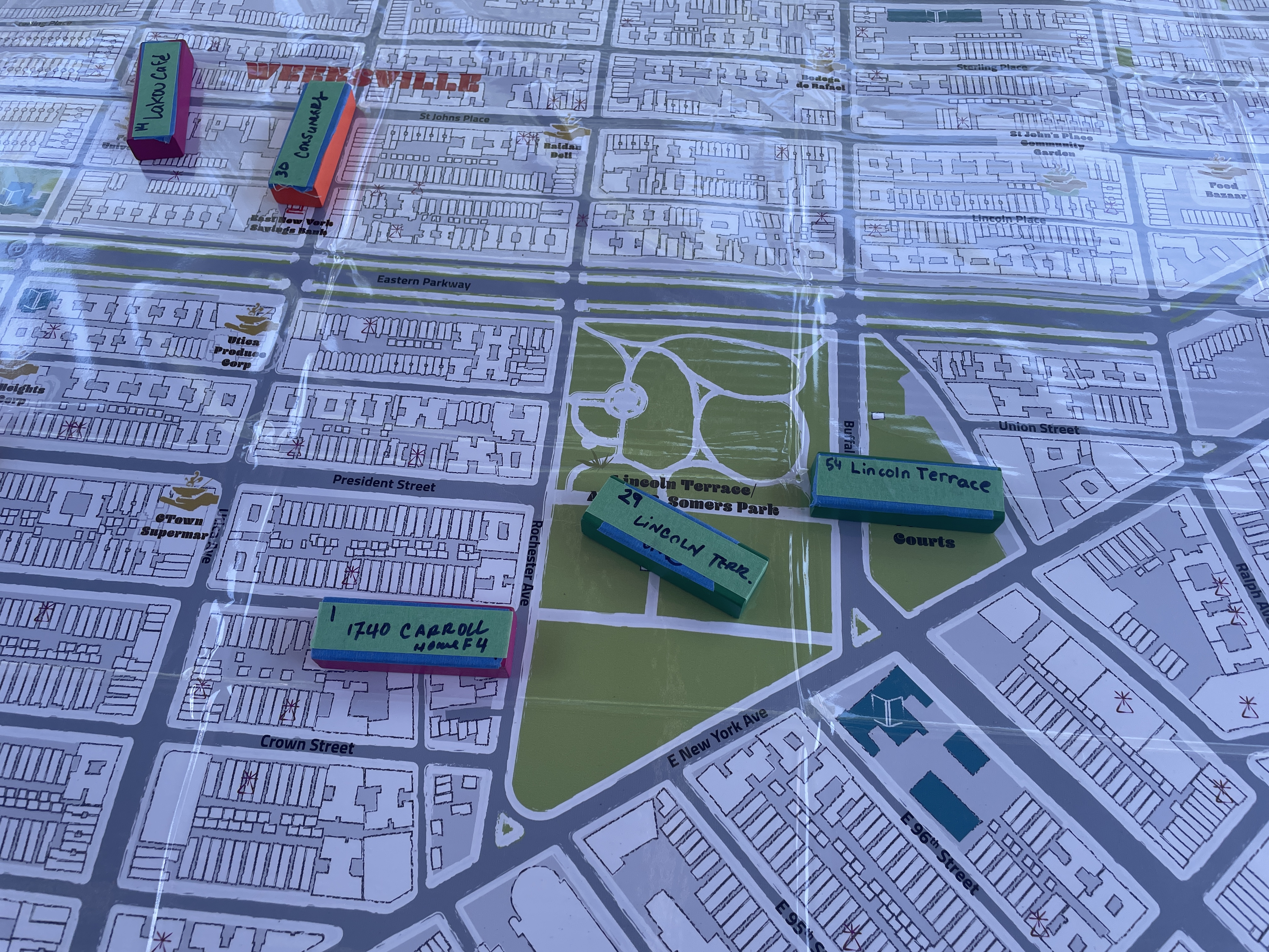 Discoveries like these make Brooklyn-based participatory mapping work bitter-sweet for me. These public-art/urban-planning installations tell stories of loss… while maintaining place-based memories and revealing the resilience of Black joy in a city that historically refused to invest in us. In fact, many of those spaces of joy identified by participants have shifted away from Weeksville’s center and towards Brownsville (where I would visit my grandparents), Bed-Stuy (where my father grew up), and Crown Heights (where I currently live). And today, these narratives of disinvestment are slowly transforming into stories of intentional support by institutions like the Brooklyn Museum next door.